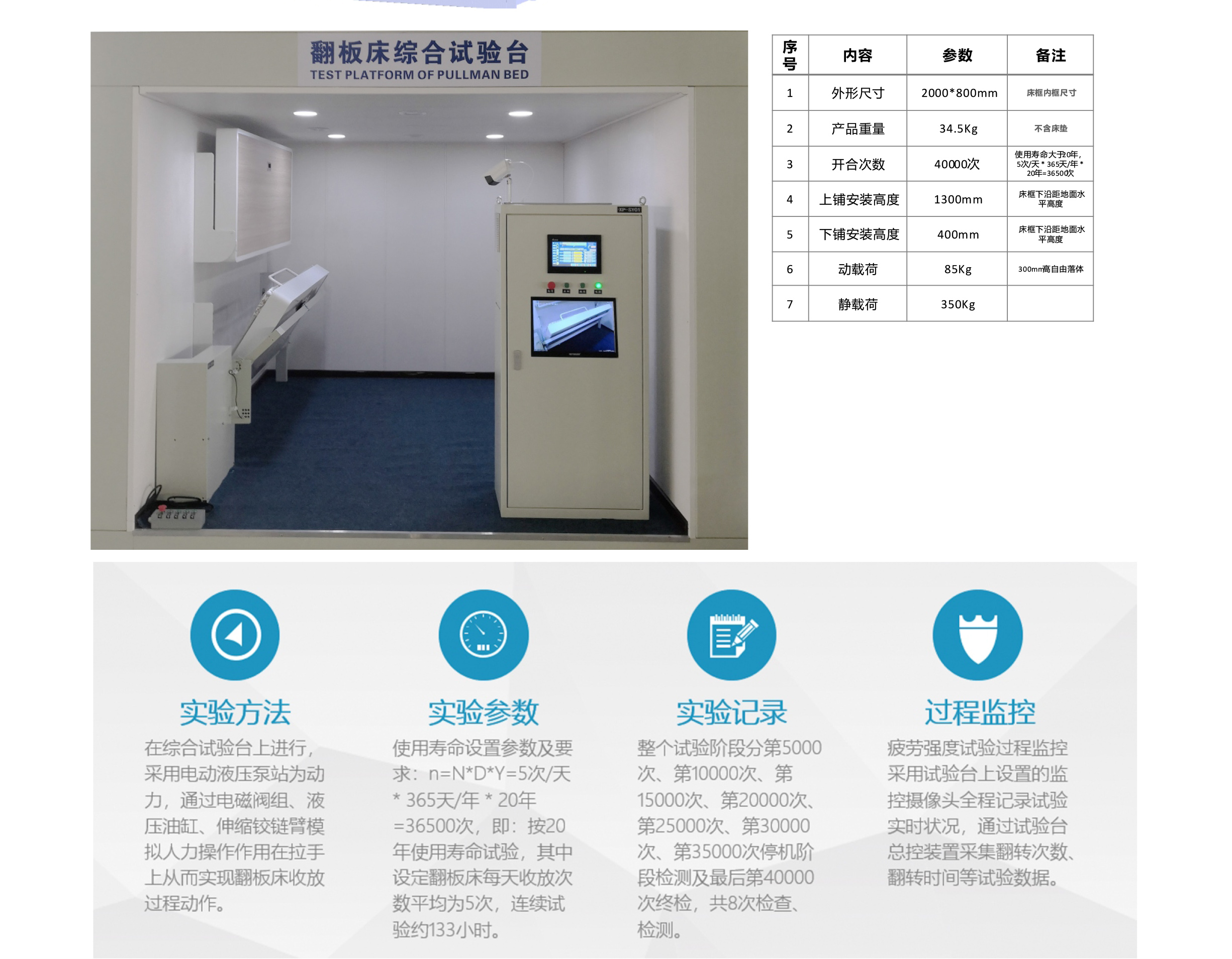 公司自主研發(fā)設(shè)計(jì)和生產(chǎn)的翻板床綜合試驗(yàn)平臺(tái)、搖擺試驗(yàn)及動(dòng)靜載荷試驗(yàn)平臺(tái)正式投入使用;試驗(yàn)平臺(tái)從結(jié)構(gòu)設(shè)計(jì)、控制系統(tǒng)設(shè)計(jì)均為我公司自主設(shè)計(jì)與制作。試驗(yàn)平臺(tái)投入使用后,將能實(shí)現(xiàn)翻板床的動(dòng)載荷、靜載荷、疲勞試驗(yàn)、搖擺試驗(yàn)等,通過實(shí)時(shí)監(jiān)控系統(tǒng)將完全記錄實(shí)驗(yàn)數(shù)據(jù),有效分析產(chǎn)品性能;