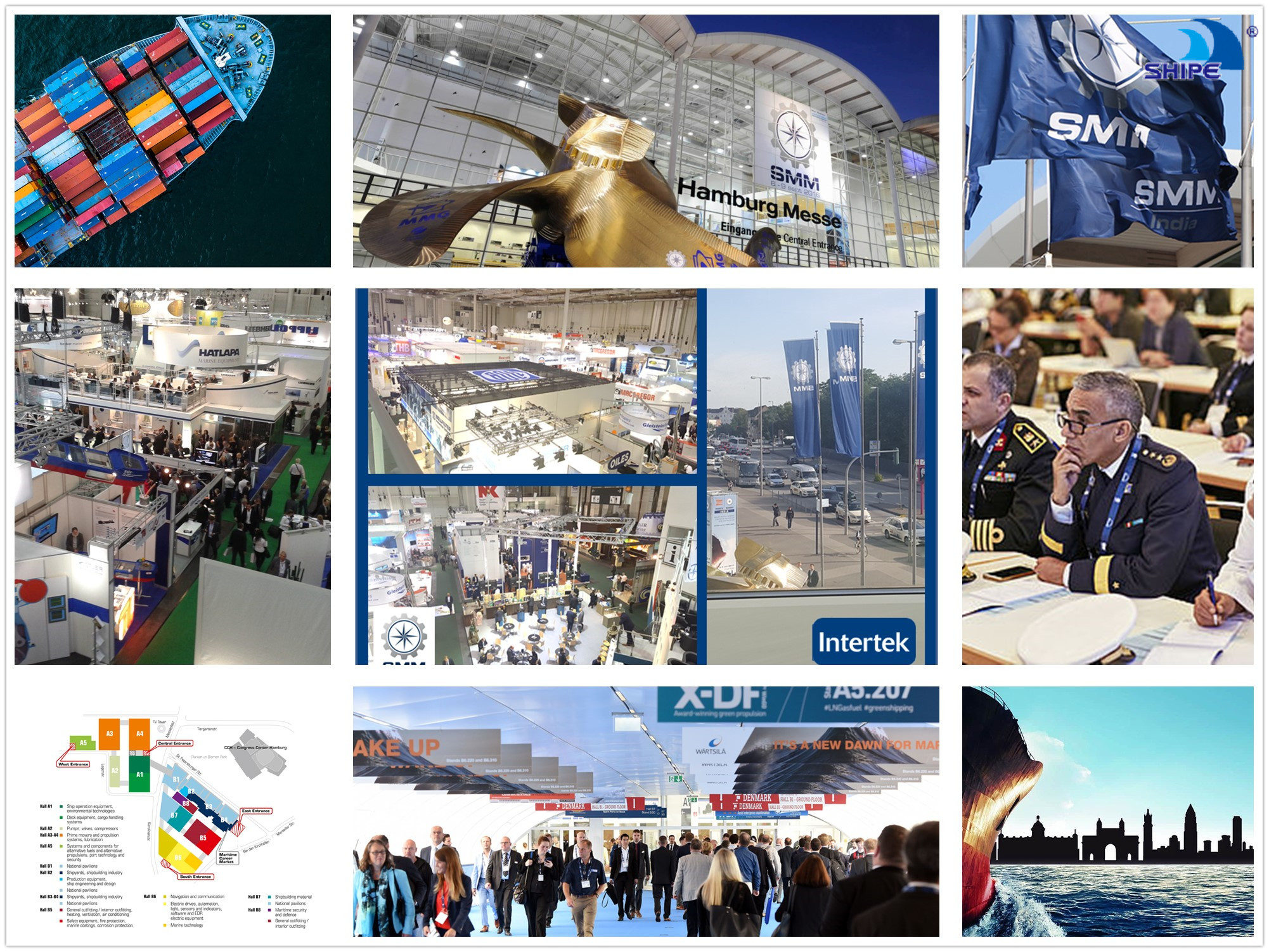 德國漢堡國際海事展(簡 稱 SMM)始于 1963 年,是世界造船領(lǐng)域規(guī)模最大、檔次最高、影響力最強(qiáng)的專業(yè)性國際海事貿(mào)易展覽會,聚集了國際上所有業(yè)內(nèi)知名企業(yè)。該展會由德國漢堡會展公司主辦,德國造船及海洋技術(shù)協(xié)會、德國機(jī)械協(xié)會、德國電子工業(yè)協(xié)會等協(xié)辦,每兩年舉辦一屆。