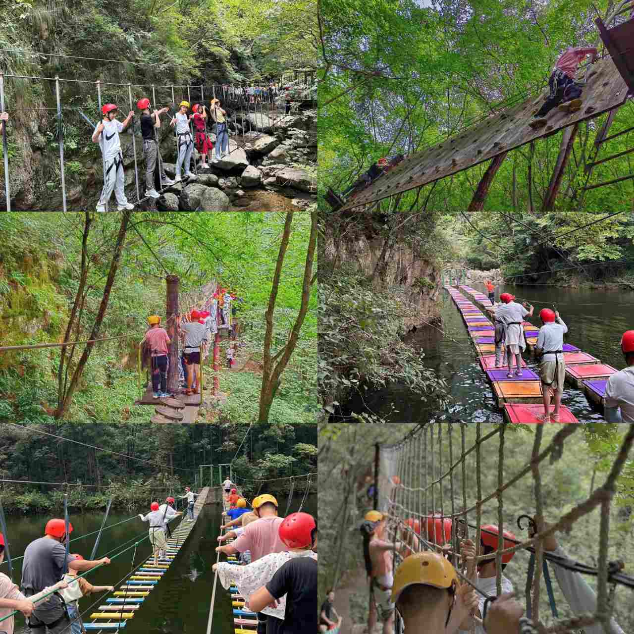 當(dāng)然不止有驚險(xiǎn)刺激的漂流,我們還帶大家體驗(yàn)了集水上、叢林、高空為一系列的空中漫步樂園,看得出來每一位小伙伴都十分勇敢呀。大家合作的也十分愉快,這都是平時(shí)日積月累的默契帶來的~